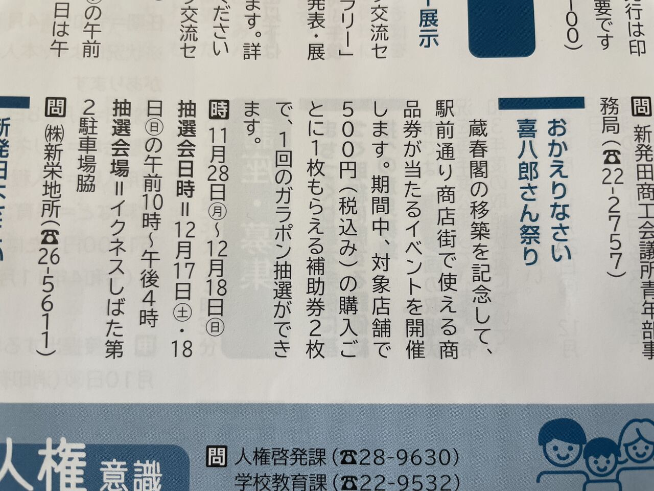 内 容:期間中、対象店舗で500円(税込)購入ごとに抽選補助券1枚進呈。補助券2枚で1回ガラポン抽選ができる。