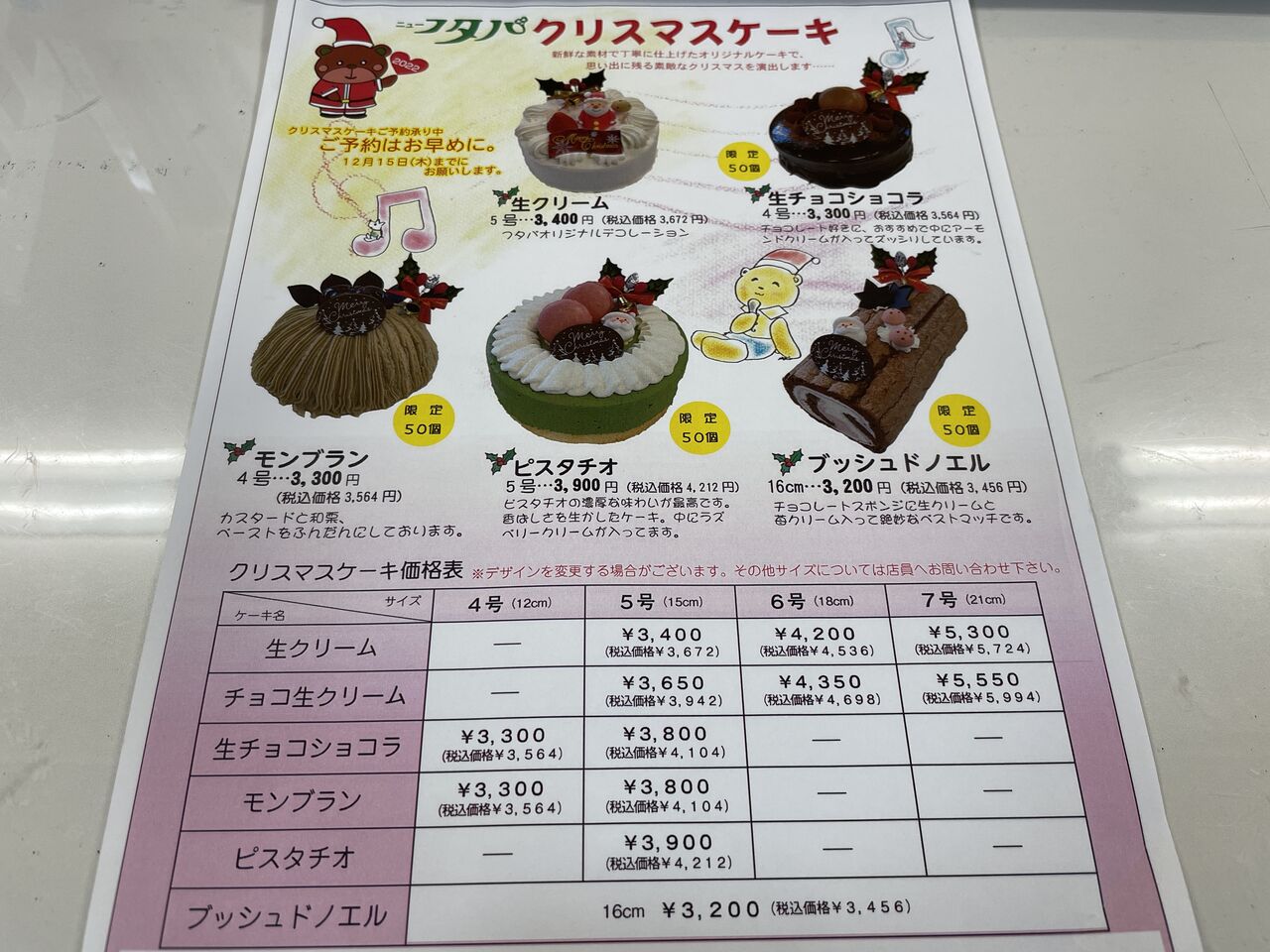 「ガトーショコラ」「ティラミスロールノエル」の