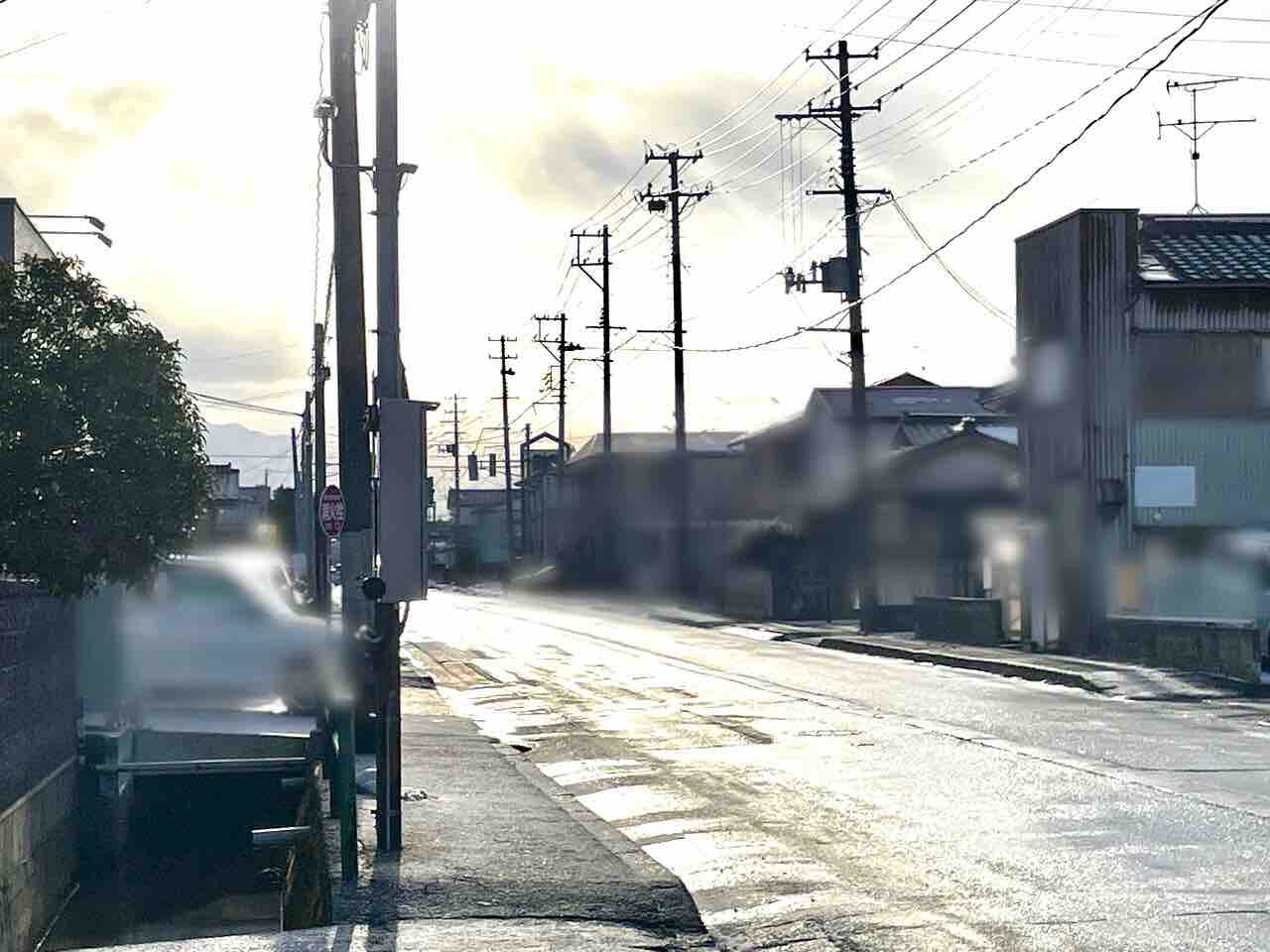 を左折して真っ直ぐ。