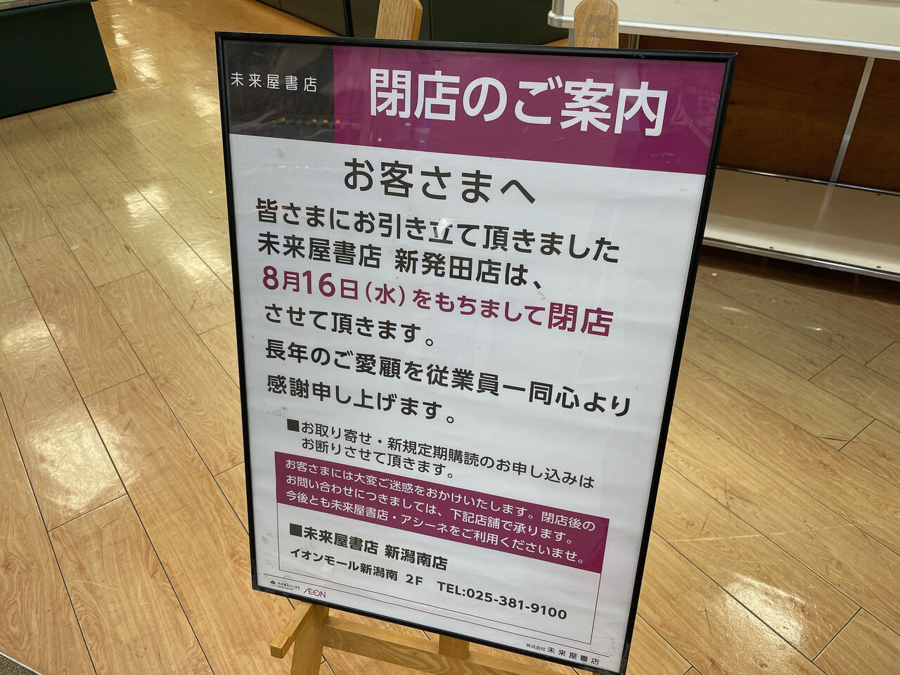 イオンの『未来屋書店』が閉店するよ!